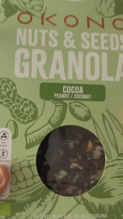 Geef je dag een natuurlijke energie boost met onze knapperige Nuts & Seeds Granola Cocoa (250g). Boordevol vezelrijke ingrediënten (bijv. lijnzaad, zonnebloempitten) en vrij van toegevoegde suikers en additieven. 100% gecertificeerd biologische ingrediënten.