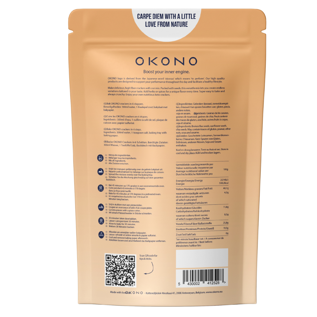 Maak heerlijke koolhydraatarme crackers met onze Crackermix (300g). Super makkelijk te bakken en altijd knapperig!